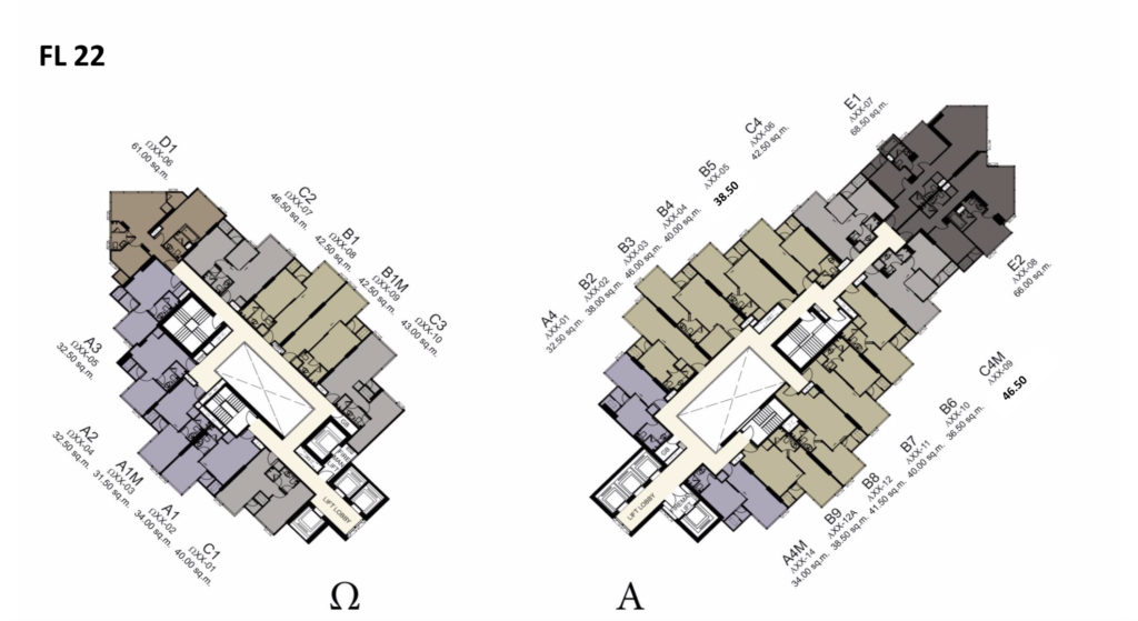 Floor Plans of the 1 Bedroom Units (Omega Building)