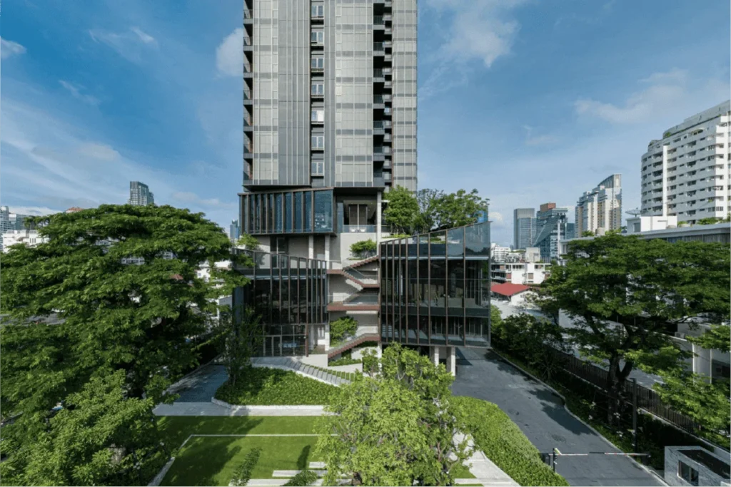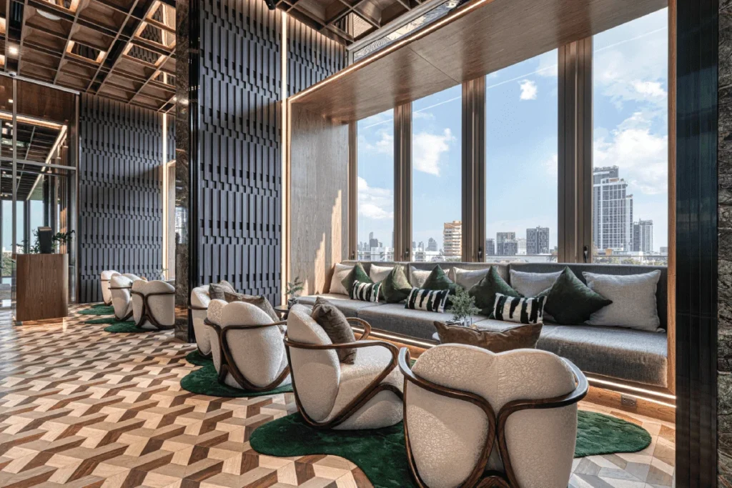 Another highlight is the local artists’ works displayed in the building’s community areas. These add a personal touch to the project while supporting the local art scene. The infinity pools and green terraces on the upper floors not only provide relaxation but also a connection to nature, which is often difficult to find in a city like Bangkok. The combination of art and nature creates a unique atmosphere that enhances residents’ well-being.